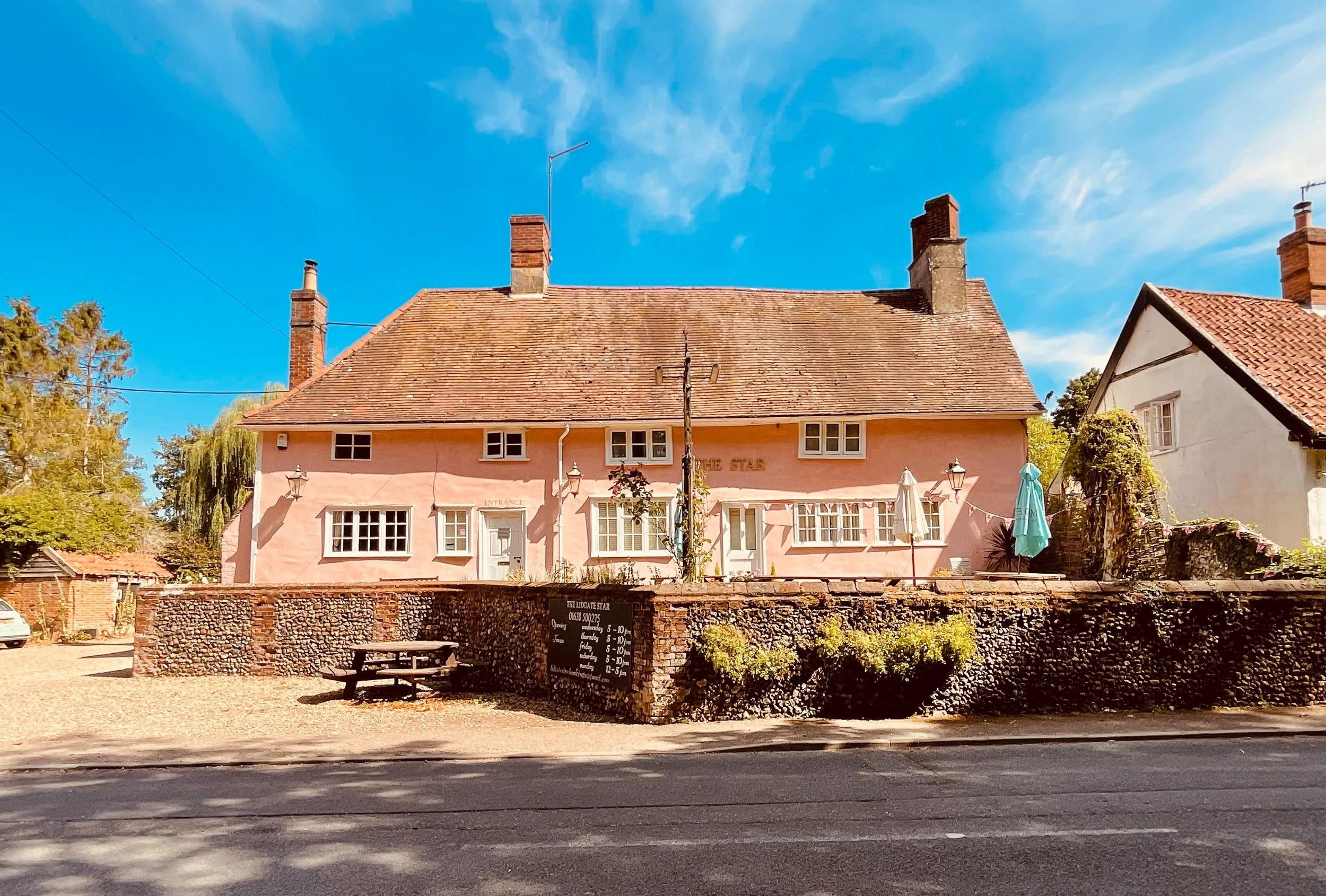 Two-bedroom woodland cabin beside Newmarket Racecourse, with two bathrooms, kitchenette, and a historic 16th-century pub next door.